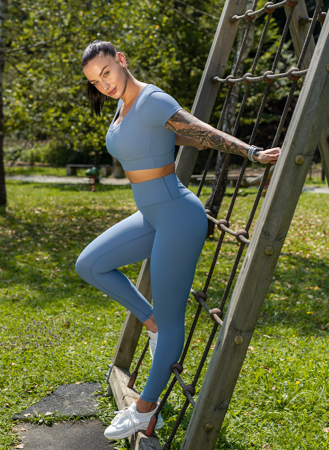 Nie przegap okazji, aby ulepszyć swoją garderobę treningową dzięki temu eleganckiemu i nowoczesnemu zestawowi. Rozciągliwe i oddychające materiały zapewniają nieograniczony ruch, dając ci swobodę podbicia każdego treningu z łatwością.