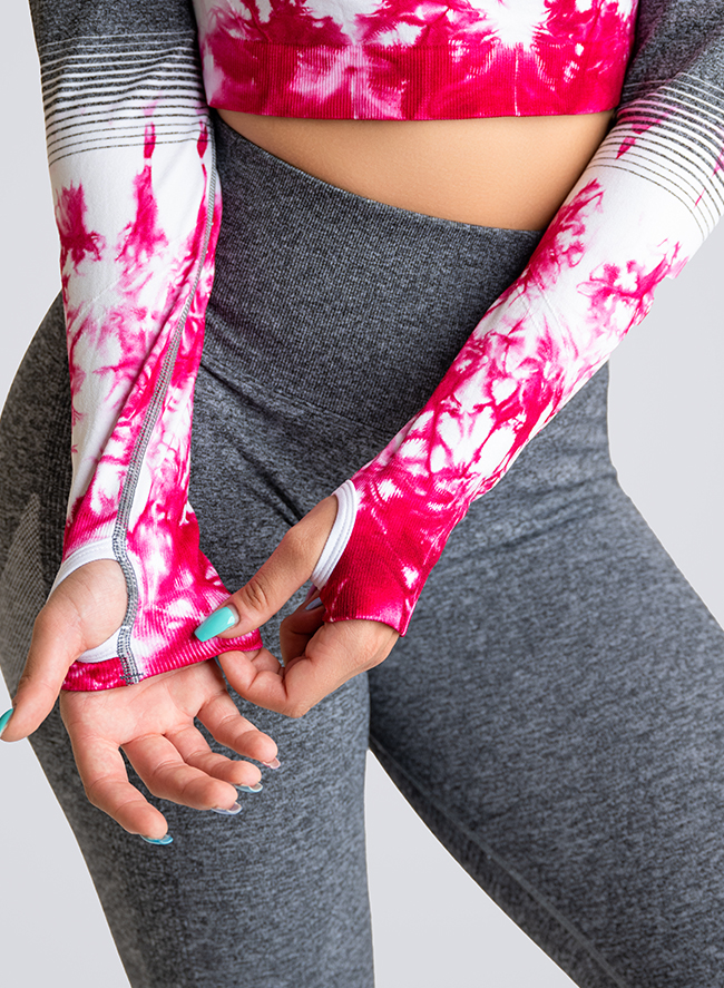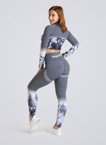 Załóż zestaw sportowy Marble i ćwicz z klasą! Zestaw ten zawiera top z długimi rękawami z otworami na kciuki dla dodatkowego komfortu i legginsy o pełnej długości z elastyczną wysoką talią dla dodatkowego wsparcia. Zestaw ten jest idealny na każdy wymagający trening, bo jest wykonany z wyjątkowo miękkiego i rozciągliwego materiału oraz zaprojektowany tak, aby zapewnić maksymalną swobodę ruchów.