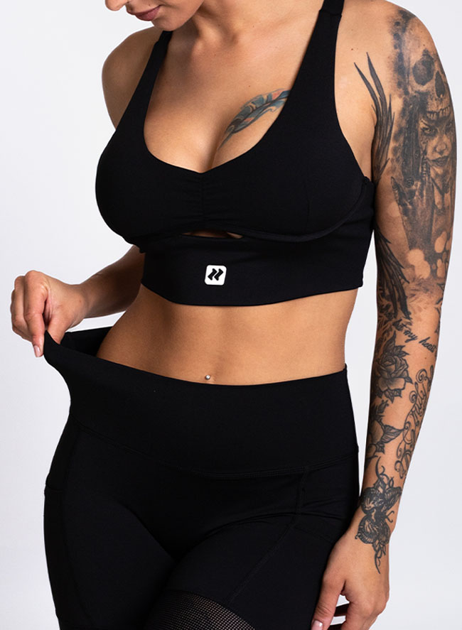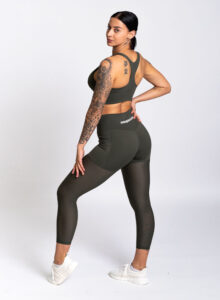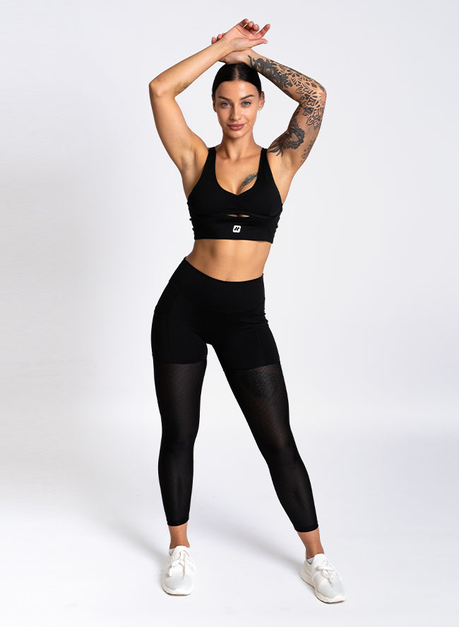 Te wyjątkowo wytrzymałe, elastyczne i oddychające legginsy oraz biustonosz sportowy to idealne połączenie stylu, wygody i wydajności. Podnieś swoją garderobę treningową dzięki temu dynamicznemu duetowi, który sprawi, że będziesz wyglądać i czuć się niesamowicie.