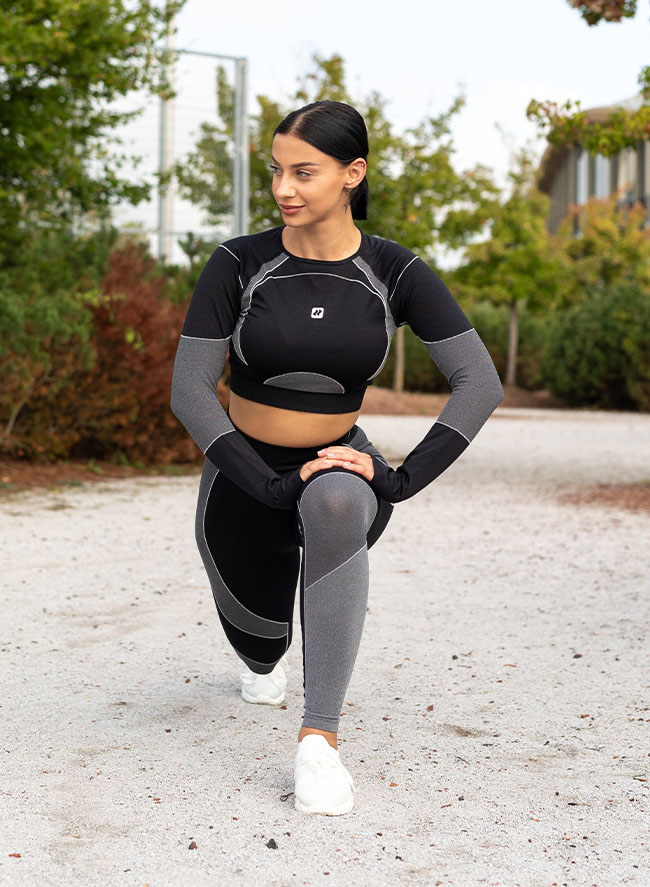 Uwolnij swoją wewnętrzną boginię fitnessu dzięki temu sportowemu zestawowi. Zaprojektowane, aby zapewnić maksymalne wsparcie, elastyczność i styl, to połączenie legginsów i topu jest idealne do każdej aktywności treningowej.