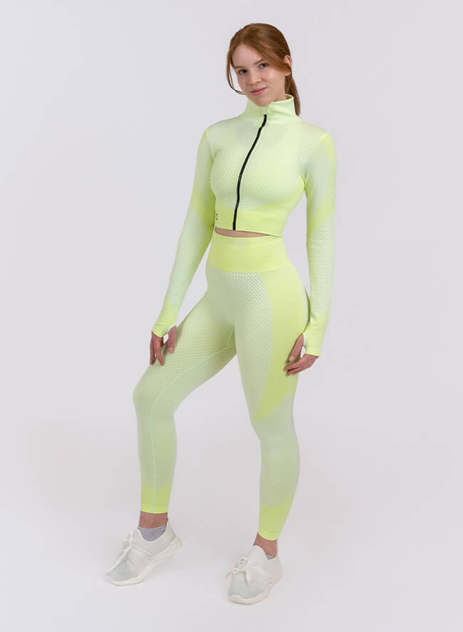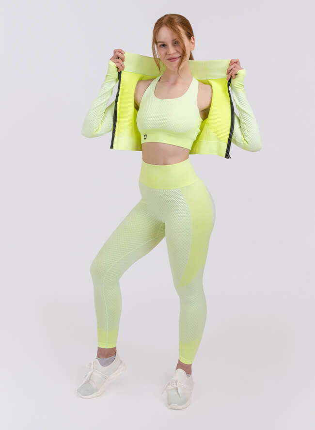 Dzięki rozciągliwemu i oddychającemu materiałowi będziesz się w tym komplecie czuła tak komfortowo, jak w drugiej skórze. W skład zestawu wchodzi stanik sportowy, bluza sportowa crop top i legginsy – wszystko, czego potrzebujesz do jogi, pilatesu, ćwiczeń, wędrówek, biegania czy tańca.