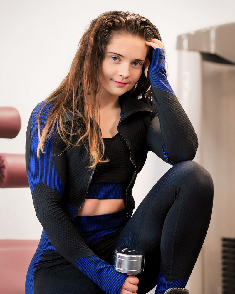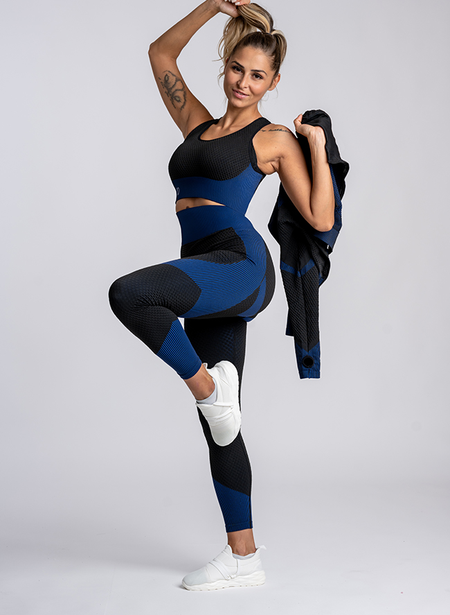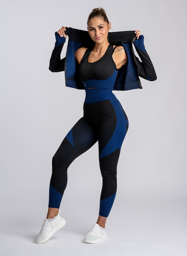 • Zestaw zawiera legginsy, stanik sportowy i bluzę sportową